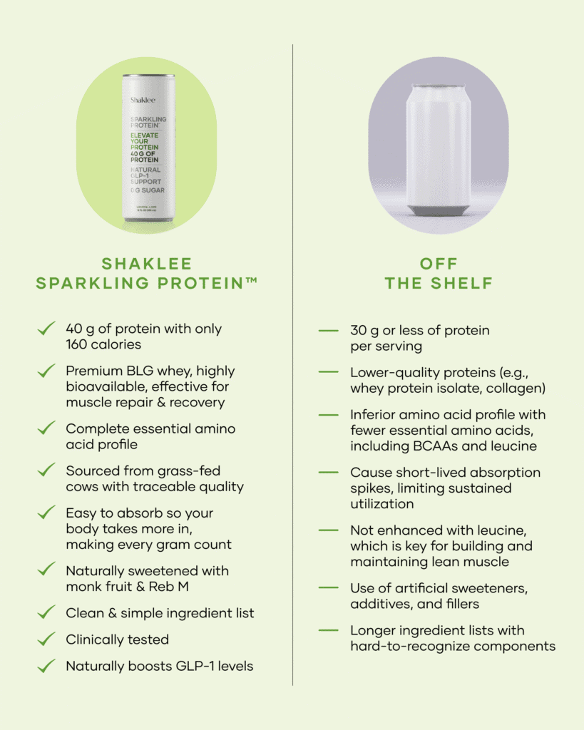 This high protein snack Shaklee Sparkling Protein is brand new in October, 2025, and is a clinically proven functional source of protein, fuels longevity, helps maintain lean muscle, and provides all-day satisfaction.*